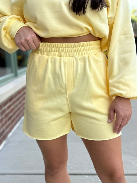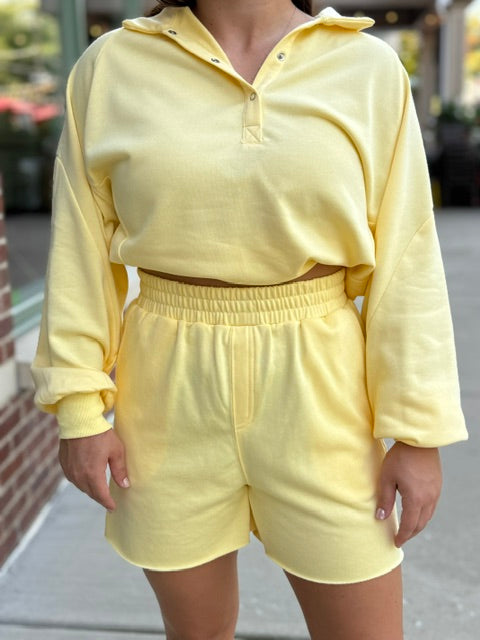 Brighten your wardrobe with these cozy yellow shorts. The ultimate combination of casual comfort and standout style. Pairs perfectly with the Lemon Drop Pullover.