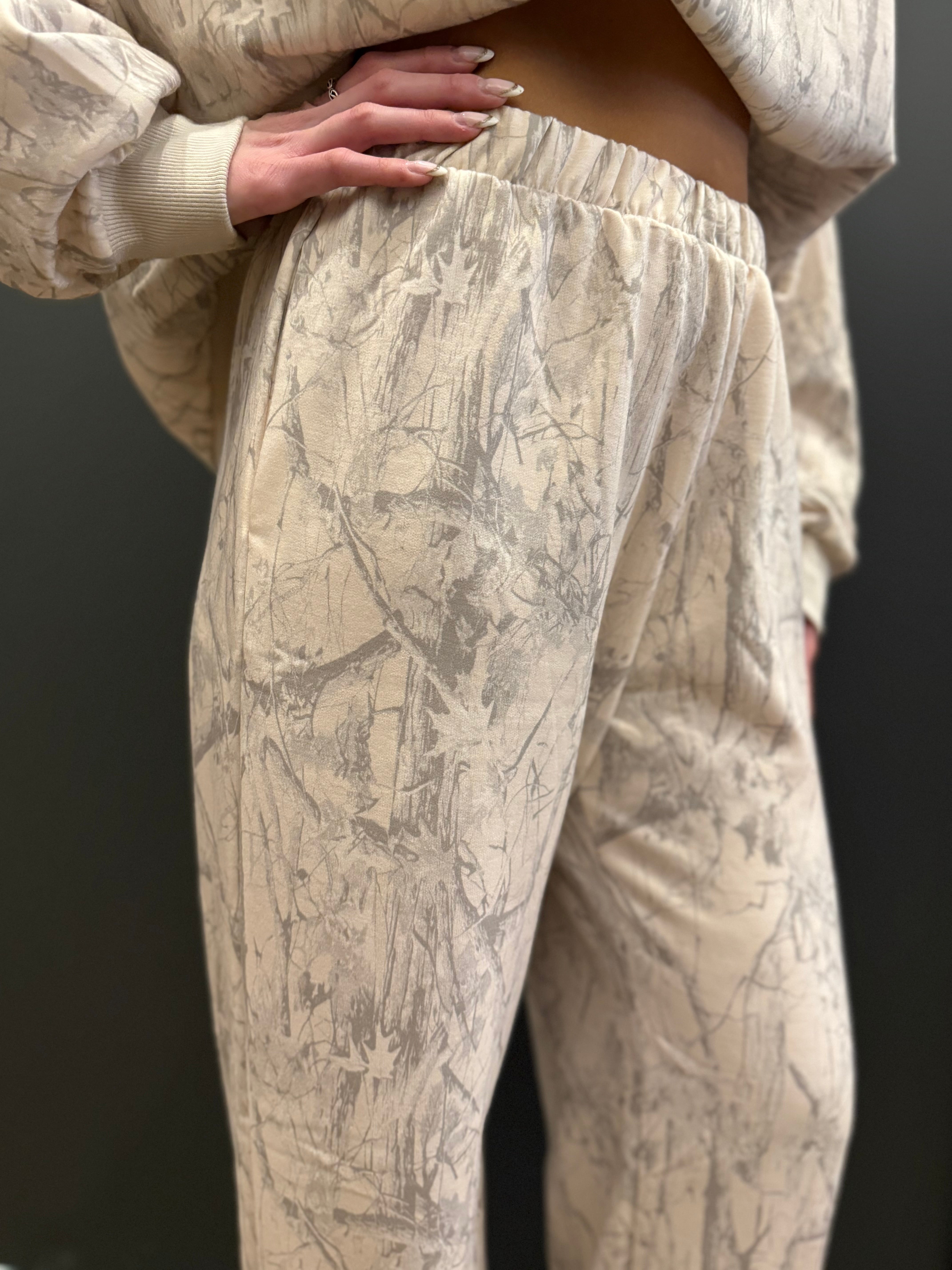 These camo pants are made from an ultra soft lightweight fabric for an all day comfort. Designed with a cinched waistband and ankle cuffs, perfect for lounging.